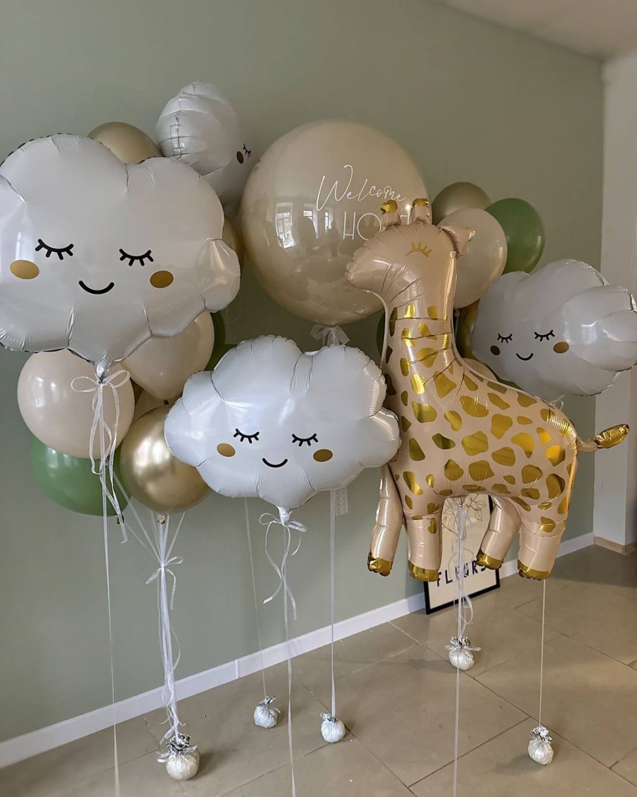 Готовое решение «Жираф в облаках» в интернет-магазине OCEAN BALLOONS. Заказать с доставкой! Тел.: +7 (495) 773-43-75.