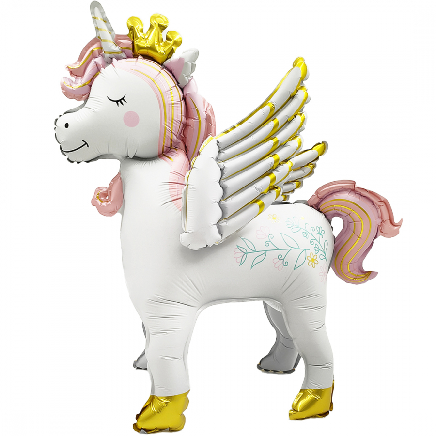 Шар 3D Фигура, Крылатый единорог, Розовый, Сатин